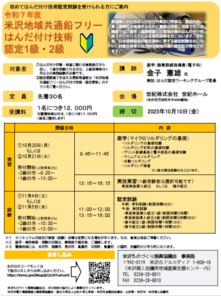 初めてはんだ付け技術認定試験を受ける方に、米沢市地域共通鉛フ […]