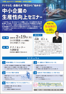 デジタル化・自動化を明日から始める!「中小企業の生産性向上セミナー」